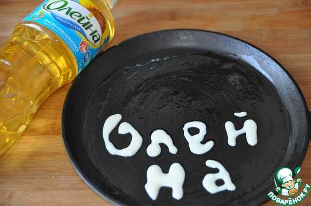 Сковороду смазываем кисточкой подсолнечным маслом «Олейна», эту процедуру можно повторить несколько раз во время выпечки.