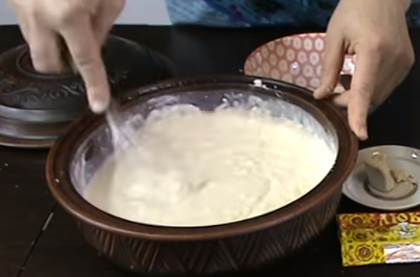 1.Для получения гречишной муки, перемолоть гречневую крупу в кофемолке или же использовать покупную муку. Залить муку крутым кипятком, на 1 см выше, оставить набухать и остывать до комнатной температуры.