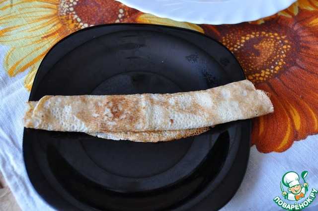 Трубочку скатываем в «улитку», «пенёк», подогнув кончик под низ, чтобы блин не распался.