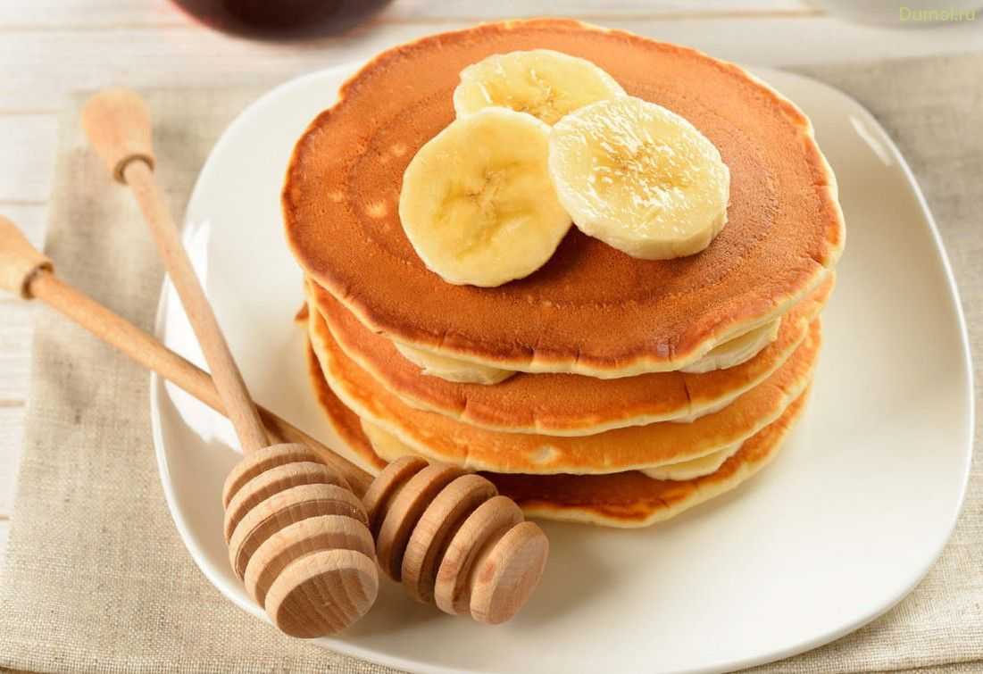 Такие блинчики отлично подойдут для завтрака, а дополнить их можно вареньем или арахисовой пастой.