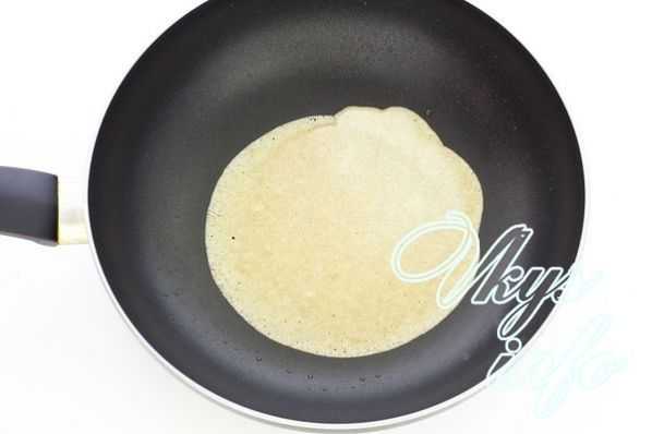 - Жарим на одной стороне до зарумянивания, затем переворачиваем. После появления характерной золотистости на второй стороне снимаем блинчик.