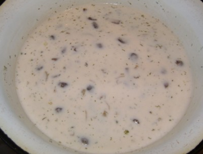 Вылить кефир в кастрюльку, добавить соль и сахар, поставить греть на плиту на средний огонь при постоянном помешивании. В процессе подогревания постоянно пробовать рукой температуру. Смесь надо довести лишь до приятной руке теплоты.