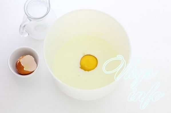Берем молоко любой жирности. Впрочем, если вы на диете используйте обезжиренный молочный продукт. В чашу с высокими бортами налейте молоко. Вбейте куриное яйцо. Возьмите кухонный миксер либо ручной венчик. Перемешайте.