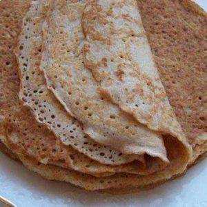 Яйцо нужно взбить и, осторожно перемешивая, постепенно добавить все продукты. Приготовленное тесто довести кипячёной водой до консистенции «жидкая сметана» и готовить блины, поджаривая с двух сторон на нагретой сковороде. Подавайте к столу с обезжиренной сметаной