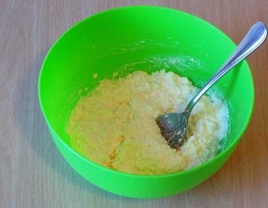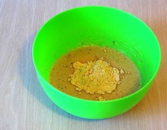 - Алгоритм действий тот же: сперва смешивают вместе се сыпучие ингредиенты.