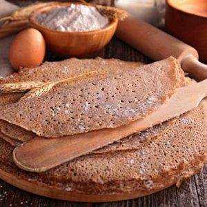 Калорийность в 100 г (1-2 небольших блинчика) — 212 ккал, бжу: белков — 5,3 г, жиров -7,5 г, углеводов — 28 г
