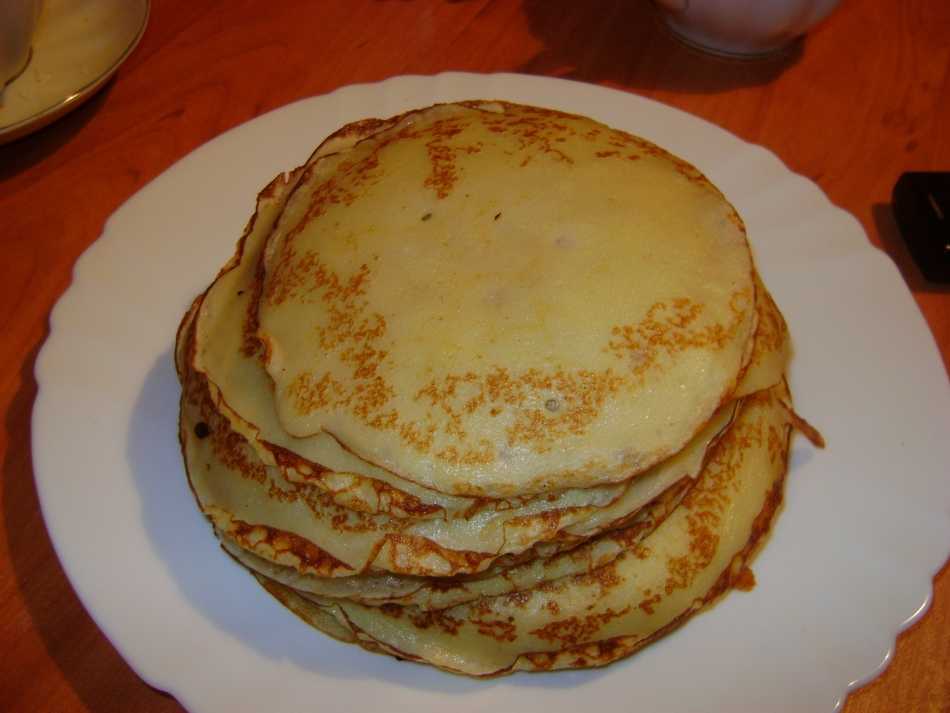 Тонкие блинчики готовы, подавайте их с солеными или сладкими ингредиентами.