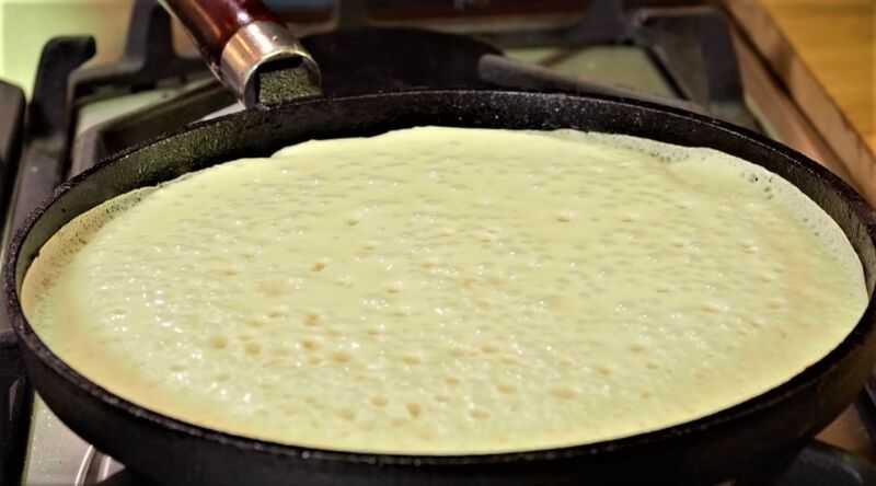 Сковороду для жарки блинчиков можно брать чугунную с низкими краями, или с толстым широким дном, если такой нет, можно взять любую другую. Хорошо так же жарить блинчики на современных скородах с антипригарным покрытие. Что бы первый блин не прилип, сковороду нужно как следует разогреть с небольшим количеством растительного масла, прежде чем вы на нее зальете первый блин.