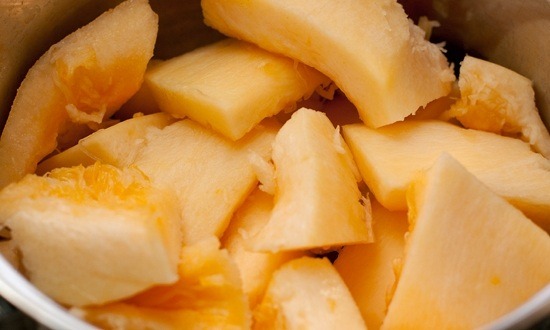 Свежую тыкву помыть, очистить от кожуры и семян. Подготовленную мякоть нарезать крупными кусками, сварить до мягкого состояния.