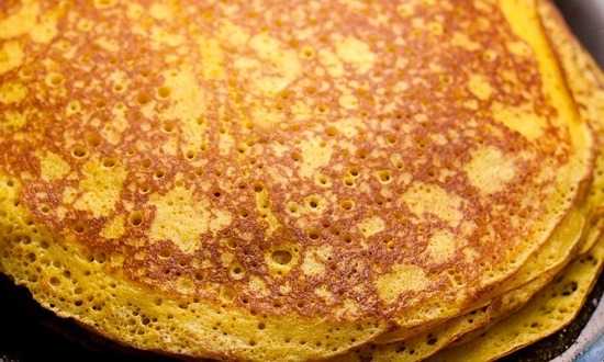 С помощью этого рецепта вы сможете приготовить очень вкусные и симпатичные блинцы. Одним из главных ингредиентов является тыква, благодаря которой они получаются яркими и жёлтыми. Если отсутствует желтая тыква, то для придания цвета можно добавить куркуму.
