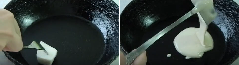 - Для первого блина обильно смажьте сковороду растительным маслом.