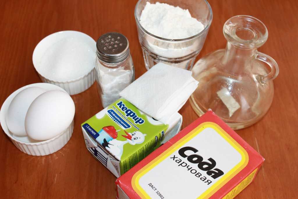 Кефир можно немного подогреть на плите, а можно просто достать из холодильника за час до готовки. В первом случае нужно быть осторожными, чтобы не сварить кисломолочный продукт.
