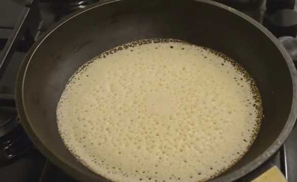 Жарим блин с двух сторон до золотистого цвета. Они легко переворачиваются, не рвутся и не прилипают.