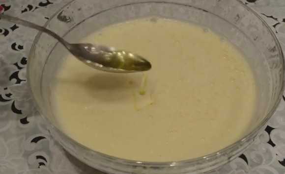 Осталось только добавить две столовые ложки оливкового масла для того, чтобы оно придало блинам дополнительную мягкость.