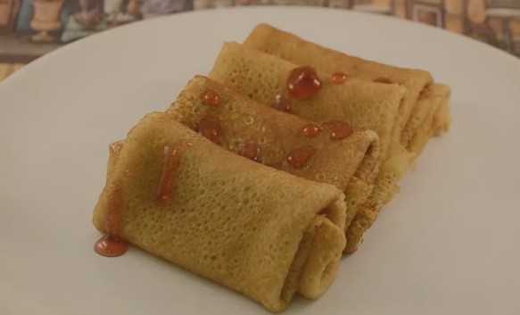 5. Нежные блинчики готовы, подавайте их с медом или вареньем. Приятного аппетита!