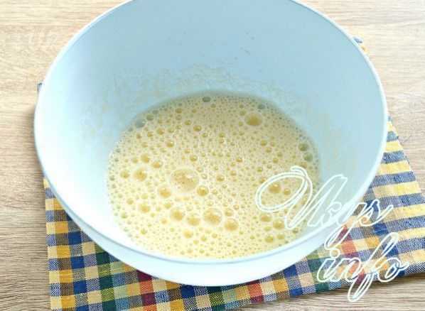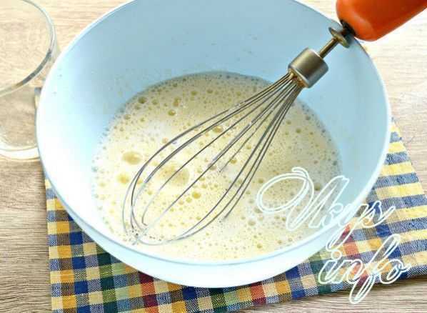 - В глубокой емкости миксером взбивают молоко с яйцами.