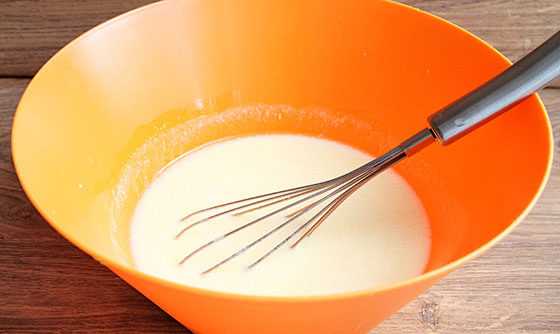 - Смешать воду и молоко в глубокой посуде, где будет готовиться тесто.