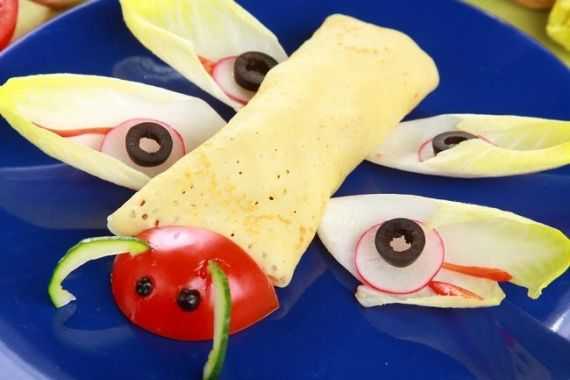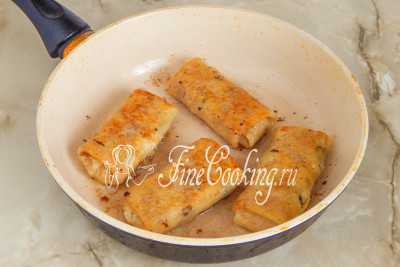 Напоследок – еще один оригинальный рецепт. На сей раз предлагаем состряпать блинцы на яичной основе и завернуть в них нежную начинку.