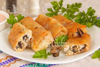 Блинчики с курицей и жареными грибами: базовый рецепт