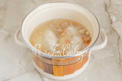 - Итак, промываем куриное мясо, кладем в кастрюлю, заливаем водой до полного погружения и отправляем на огонь.
