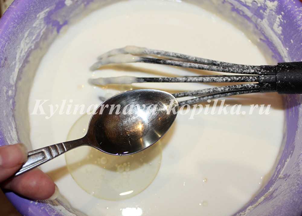 7. Добавляем к полученному тесту растительное масло, еще разочек все перемешиваем и начинаем выпекать.