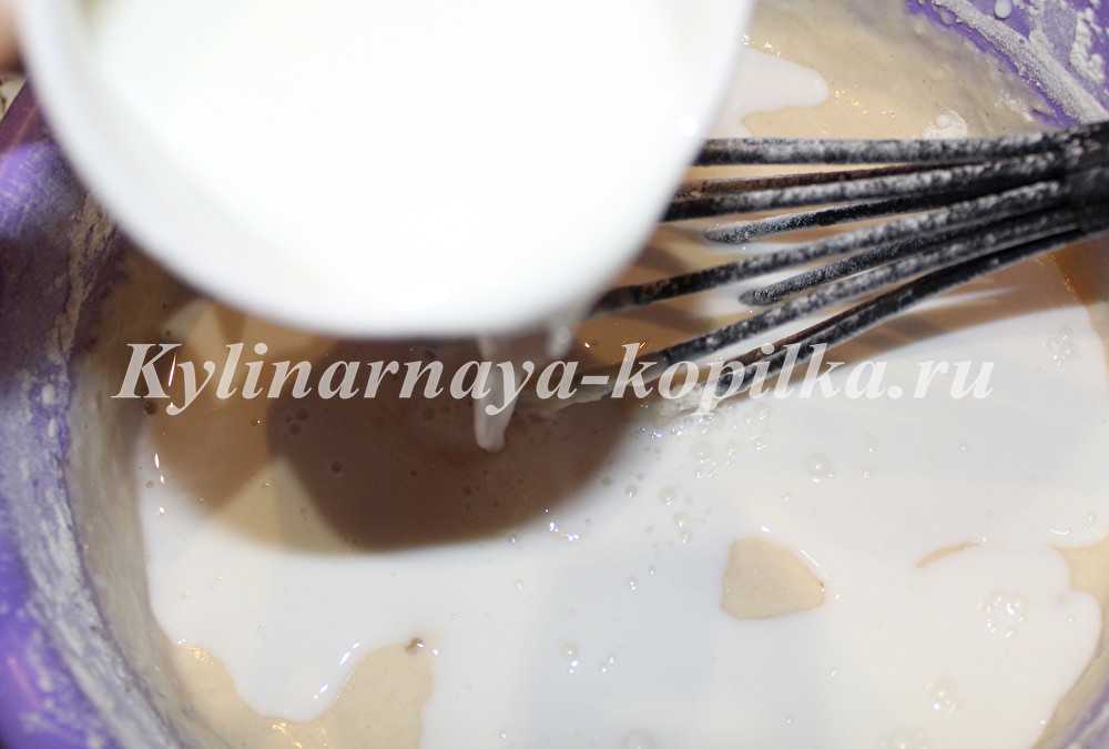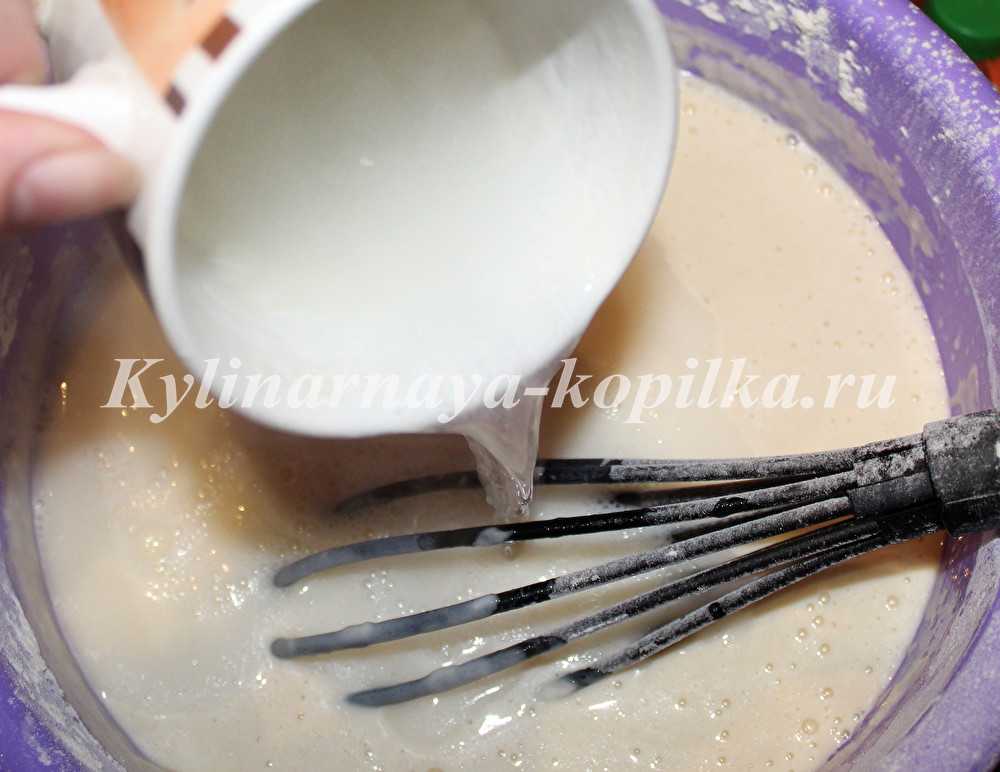 В этом тесте приятно еще и то, что ждать, пока оно настоится, не нужно, можно сразу печь. Однако получившееся тесто будет совсем жидким, по консистенции вода-водой, но не пугайтесь, так и должно быть.