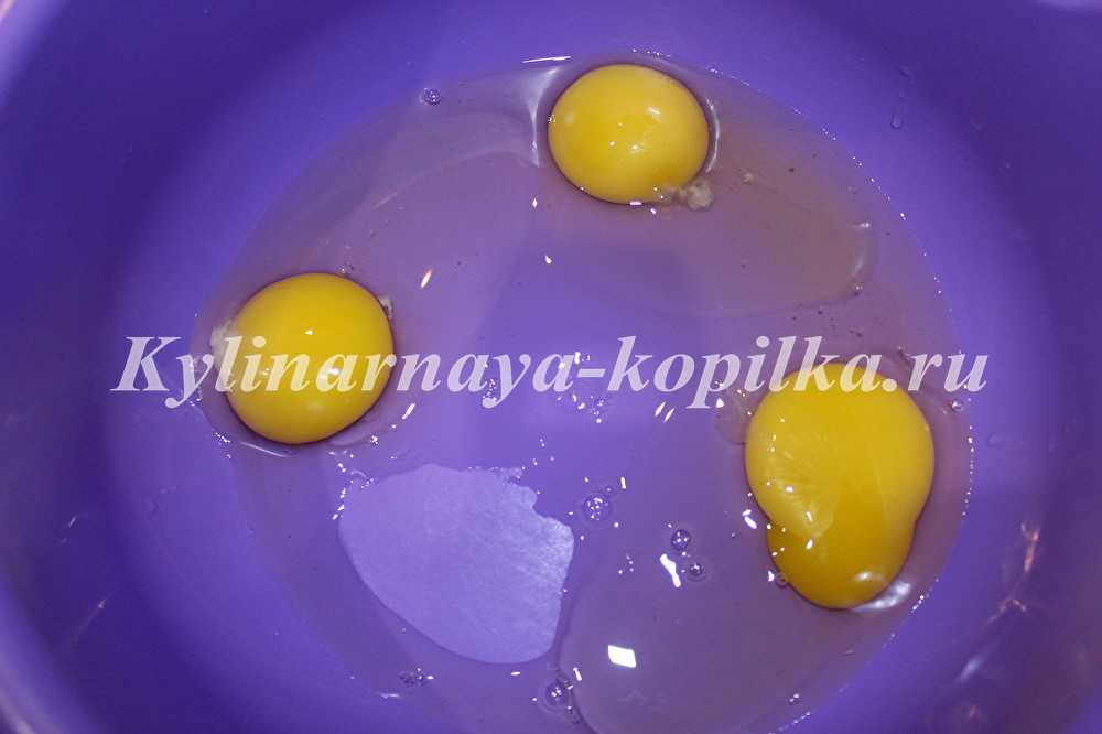 Первым делом я поставила на огонь чайник, чтобы довести воду до кипения. Затем разбила в миску сразу все 3 яйца.
