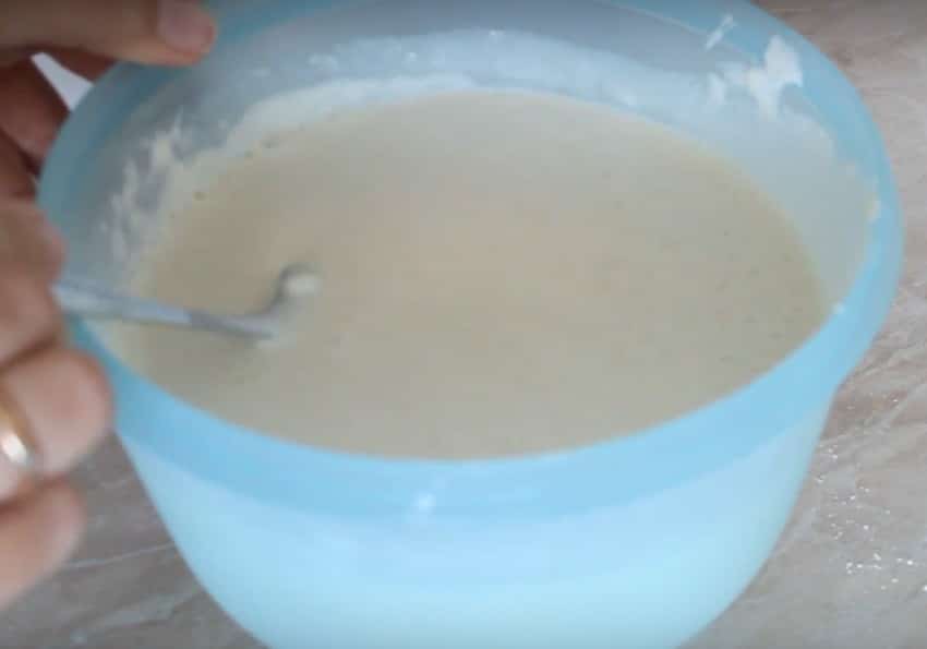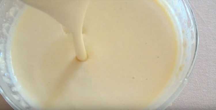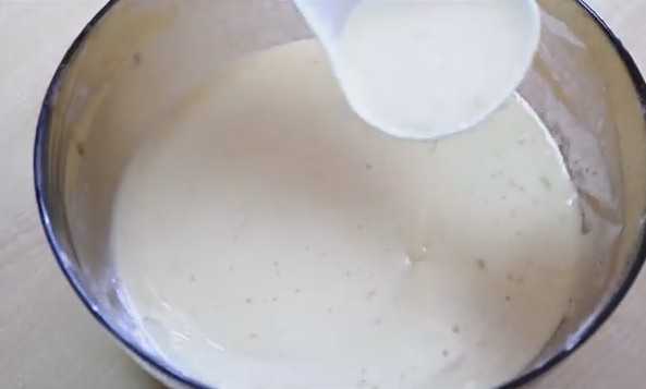 Все хорошо перемешиваем, чтобы в ней не оставалось комочков. Консистенция готового теста, должна напоминать жидкую сметану.