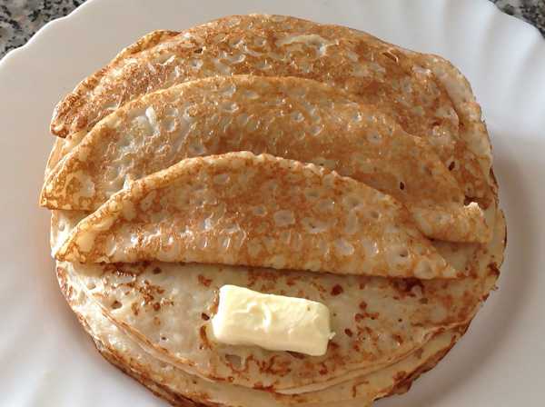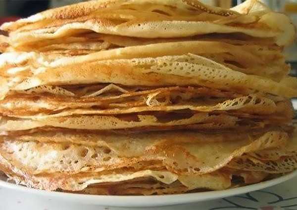 Тесто замешивается на светлом нефильтрованном пиве. Из него получаются самые воздушные и ажурные блины. Калорийность блюда на 100 грамм – 224 ккал.