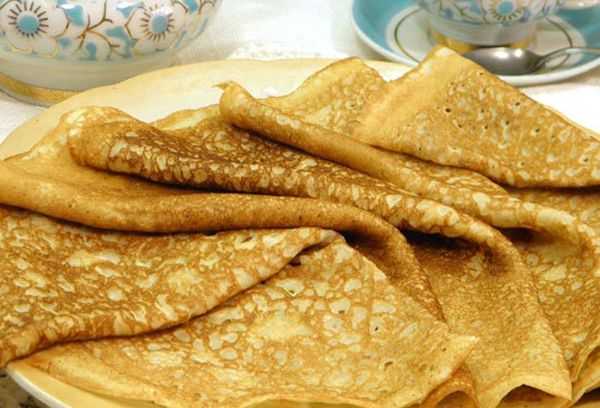 Если в тесто без яиц влить кипяток, оно станет пластичным и «некапризным». Вы легко перевернете блины, они не будут рваться. Кстати, при традиционном выкладывании «башенкой» на тарелку они становятся мягкими.