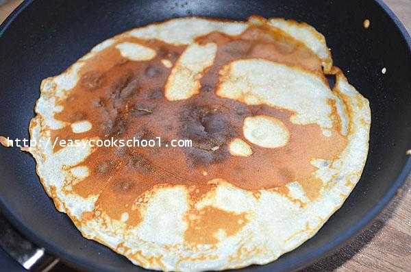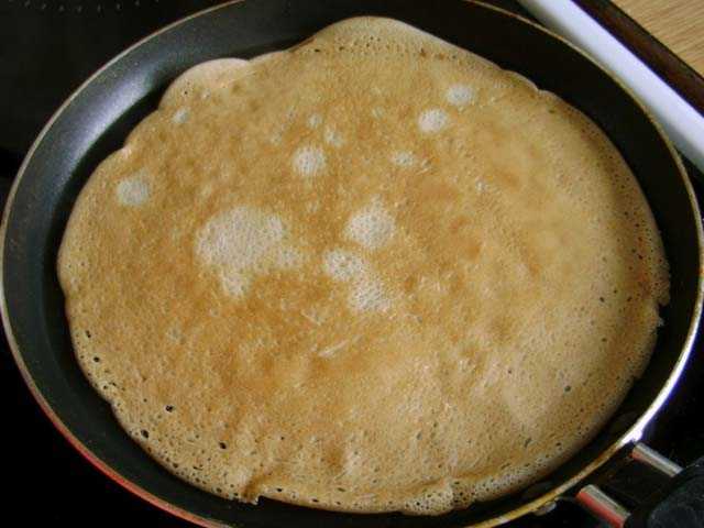 - Поддеть деревянной лопаткой и перевернуть. Выпекать еще минуту.