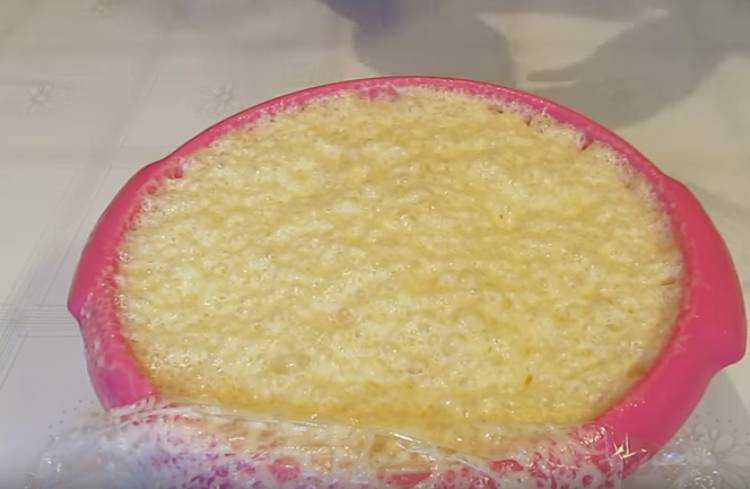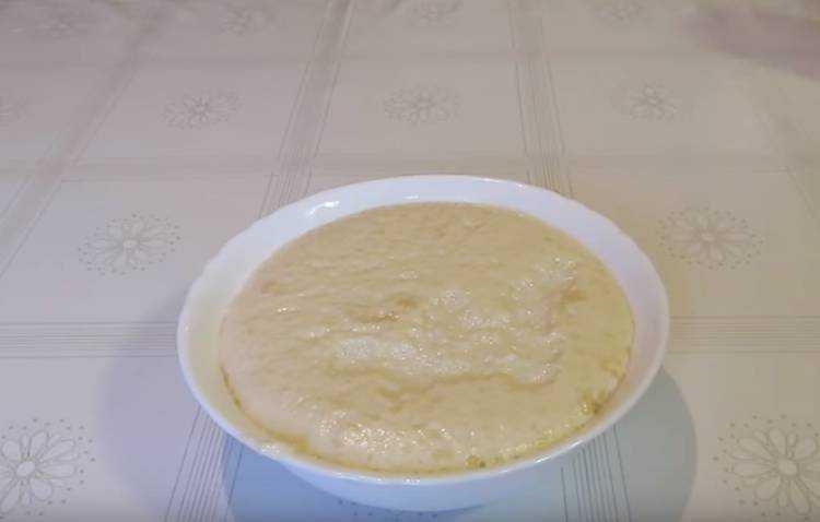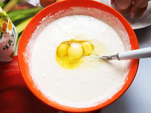 - Добавить прокисшую молочку, муку, перемешать до сметанной консистенции.