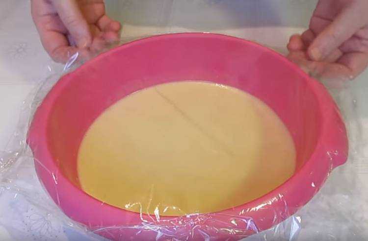 - Раскаленную сковороду смазать, равномерно разлить половник теста.