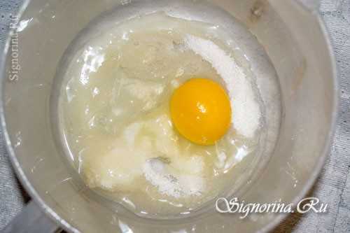 - Яйцо взбейте в пену и подмешайте ряженку.