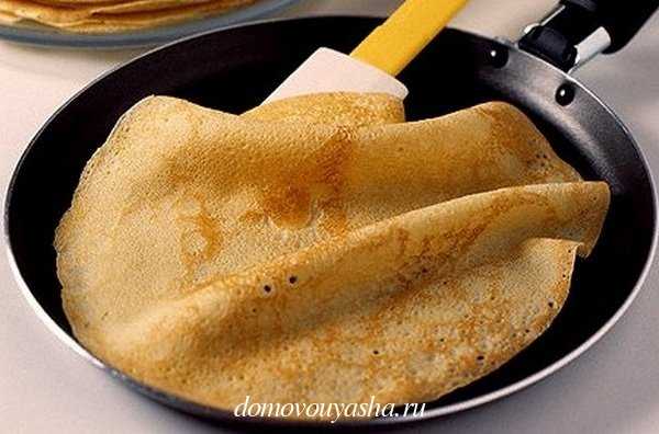 Блинчики, сделанные без яиц, получаются очень легкими, воздушными и нежными. Минеральная вода придает тесту эластичность, за счет чего оно отлично сохраняет форму и не распадается на части в процессе переворачивания.