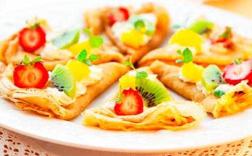 Несмотря на то, что угощение получается максимально тонким, оно не рвется даже при заворачивании начинки. Готовится оно из: 2 ст. подкисшего молочного продукта, пары щепоток соли, 7 г ванильного сахара, 2 куриных яиц, 1,5 ст. муки в/сорта, 2 ст.л. неароматного масла, 0,3 ст. обычного сахарного песка.