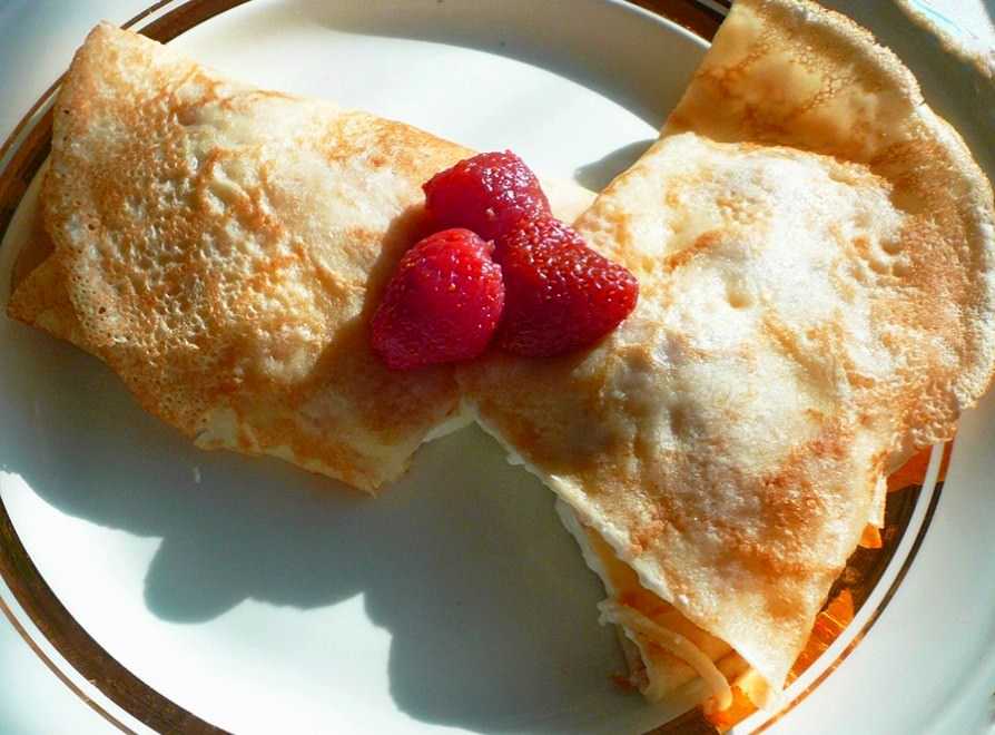 Такие блины выпекаются быстрее чем классические, поэтому нужно следить, чтобы они не пригорали. К тому же они очень нежные и тонкие – переворачивать и снимать их нужно аккуратно.