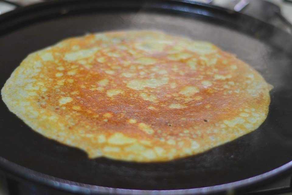 Выпекаем на нагретой сковороде, смазанной небольшим количеством растительного масла. После выпекания первого блина сковороду можно не смазывать, а готовые лепешки можно ставить стопкой и через два-три блина наливать немного сливочного масла.