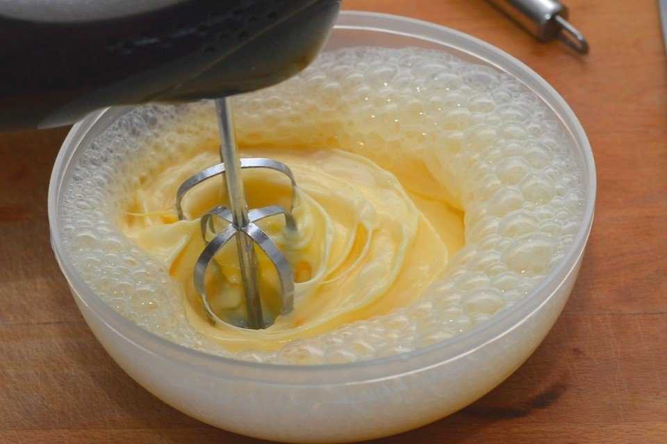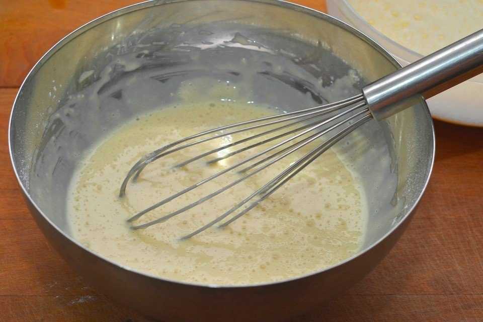 - Перемешиваем яйца, соль и сахар, пока кристалики сахара не растворятся в смеси.