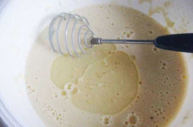 - Необходимо всегда жидкость вливать в муку: это поможет избежать появления комочков.