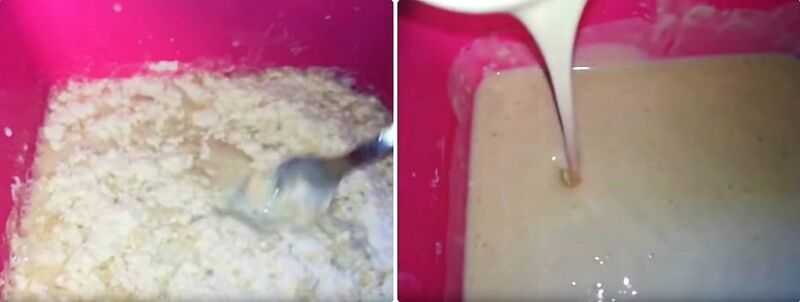 - Шаг 4. Влейте в массу растительное масло, теплую водичку и снова все перемешайте, пока смесь не станет однородной.