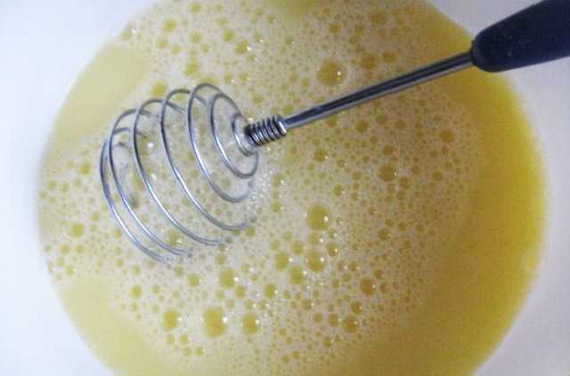 - Шаг 2. Добавьте к смеси дрожжей и молочка яйца, тщательно все взбейте. Лучше при этом пользоваться миксером или венчиком.