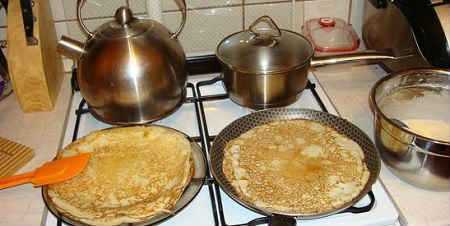 Выбранную сковороду следует хорошо накалить. Если она не будет достаточно горячей, блины будут приставать к сковороде. В идеале, сковорода должна быть чугунной с толстым дном, но это дело вкуса каждой хозяйки.