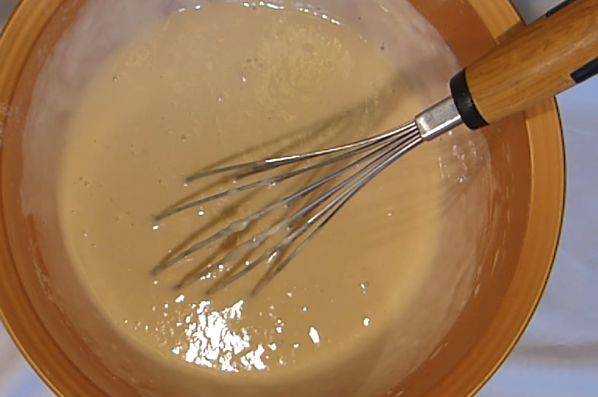 И размешайте венчиком тесто до однородного состояния, чтобы не было комков. Оставьте его на несколько минут.