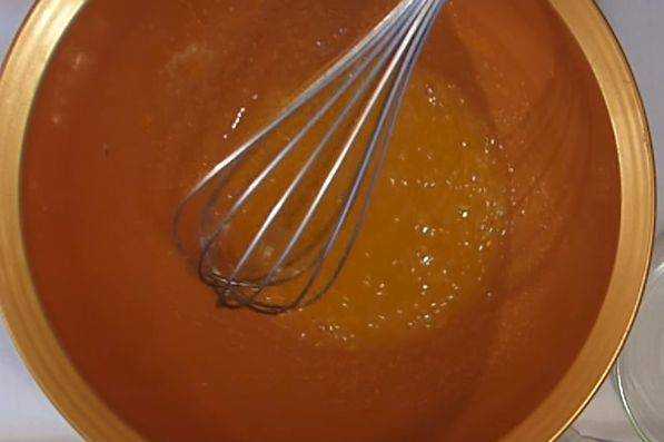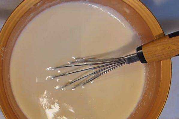 - Когда получится однородная яичная масса, в нее необходимо добавить топлёное молоко. Снова все перемешать.