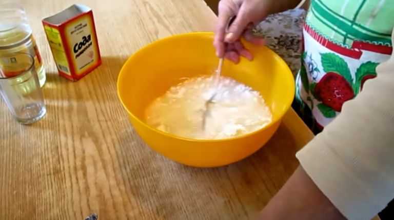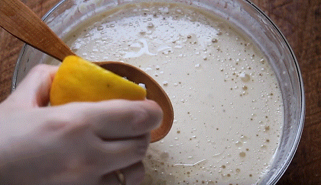 6. В ложку с содой добавляем лимонный сок для гашения.