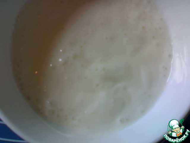 - Молоко смешиваем с кефиром и подогреваем до теплого состояния 40-50oC.
