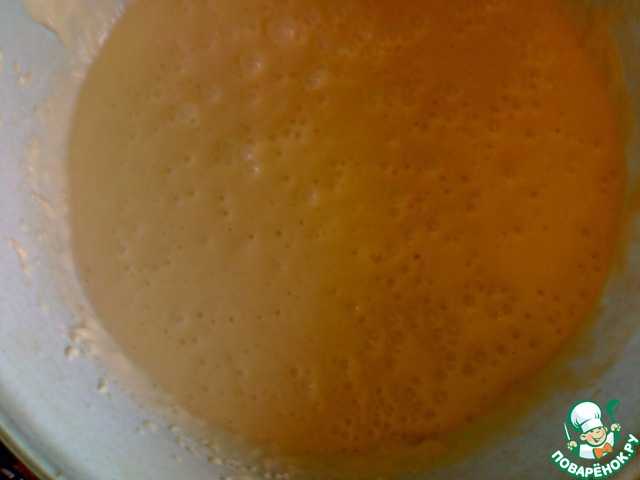Тесто получается очень нежным, кажется, что оно будет липнуть ко всему. Иногда ( в зависимости от муки) приходится добавить муки. но! Тесто все-равно должно вам казаться липнущим. Не забывайте, что оно набухнет и станет чуть более «крутым» по консистенции после выбраживания. Мука впитает воду. «-