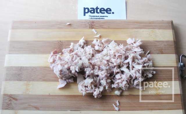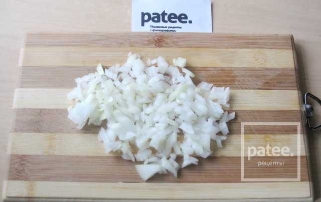 Готовим начинку. Репчатый лук чистим, моем и мелко нарезаем.