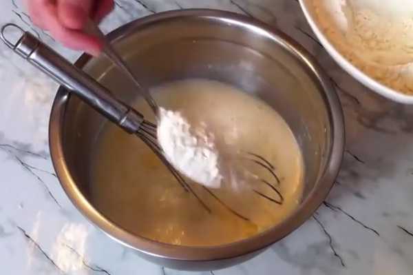 3. Всегда засыпайте муку в приготовленную смесь, а не наоборот, так она легче замешается и комочки, которые образуются при размешивании, быстрее растворятся. Если сделаете наоборот, вся ваша мука прилипнет к стенкам ёмкости и поэтому труднее будет сделать замес.